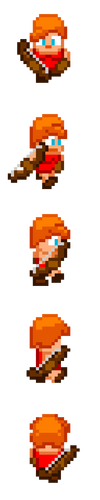 In peaceful time, she can also lay her bow, so her sprite also contains a version without her weapon.